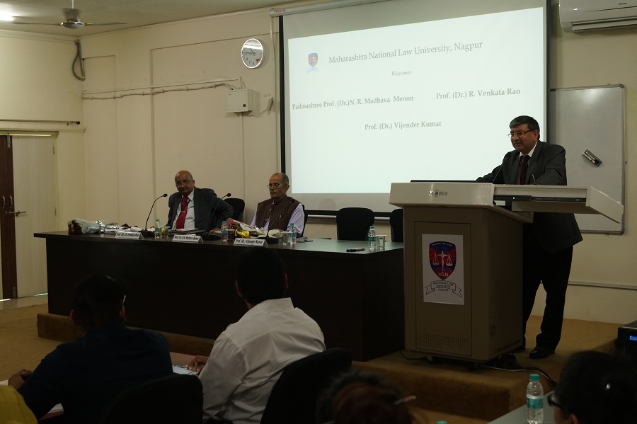Maharashtra National Law University, Nagpur, organised Orientation Programme for Ph.D. Course Work for its 2nd Batch of Research Scholars on February 18, 2019. Padma Shri Professor (Dr.) N.R. Madhava Menon, Hony. Professor and IBA Chair on Continuing Legal Education, NLSIU, Bangalore, inaugurated the Course. In his inaugural address Prof. Menon emphasised that the research should be conducted in order to achieve constitutional goals such as to achieve justice - social, economic and political. He also emphasized that the students must also attempt empirical research to find out legal solutions of existing social problems. Prof. (Dr.) R. Venkata Rao, Vice-Chancellor, NLSIU, Bangalore who was also present at the Orientation Programme shared his thoughts and encouraged students to focus on new areas of Research.