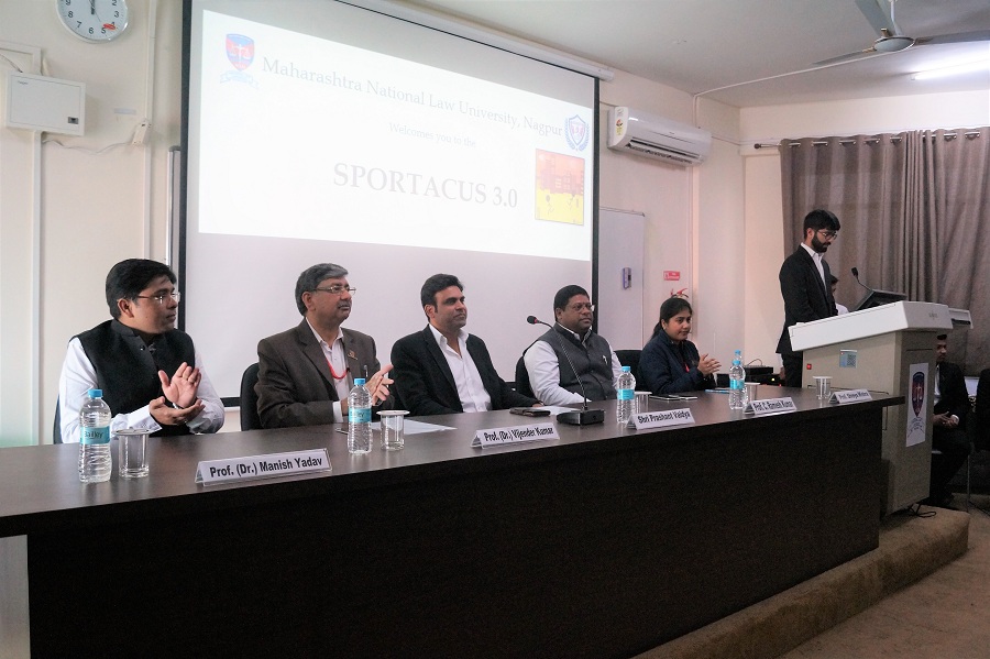 The Third Edition of Sportacus was organized over 4 days in January, 2019 and consisted of 11 indoor and outdoor sports. An inaugural ceremony was organised at the University with Shri Prashant Vaidya, a former Indian Cricketer and presently Vice-President of Vidarbha Cricket Association, as the Guest of Honour. The ceremony opened with the welcome address by Prof. (Dr.) Vijender Kumar, Vice Chancellor of University who also proposed a new Course on Sports Law which the University would offer in the future. This was followed by Dr. Manish Yadav, Faculty Convener, Sports Committee informing the gathering about this edition's unique segment, the Cricket Auction which was conducted for the selection of cricket teams for Sportacus 3.0. Prof. Shreya Mishra appreciated the work of the Committee in organizing the fest and outlined the progress it had made since the first edition. The Guest of Honour, Shri. Prashant Vaidya shared his valuable life experiences and emphasised the importance of sports in life. He also declared Sportacus 3.0 open and conferred the Committee members with badges in the investiture ceremony. The members also took a pledge where they promised to uphold the spirit of sports and honour of the university. The inaugural ceremony culminated with the Prof. Ramesh K. Chamarti, Registar(I/c) and OSD (Academics) offering a vote of thanks to Shri. Prashant Vaidya for gracing the occasion and the Committee for organizing Sportacus 3.0.