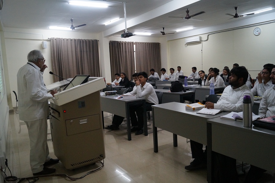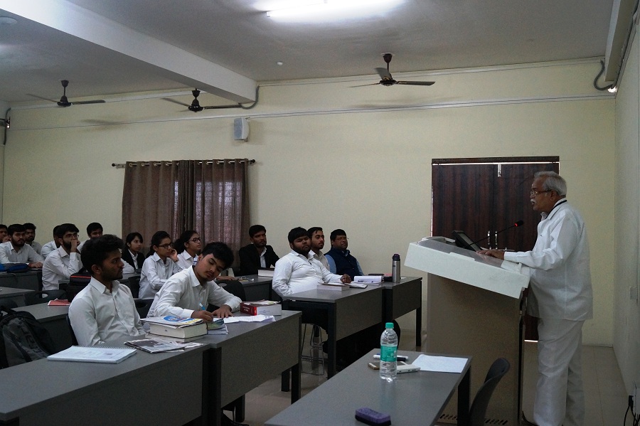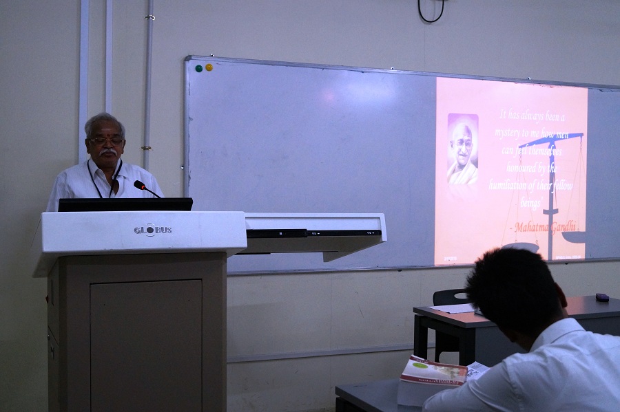 Prof. (Dr.) T.V. Subba Rao, Senoir Professor of Law, NLSIU, Bangalore visited the University on February 10, 2018 and delivered a lecture to Undergraduate Batch of 2016 on Human Rights and Fundamental Rights