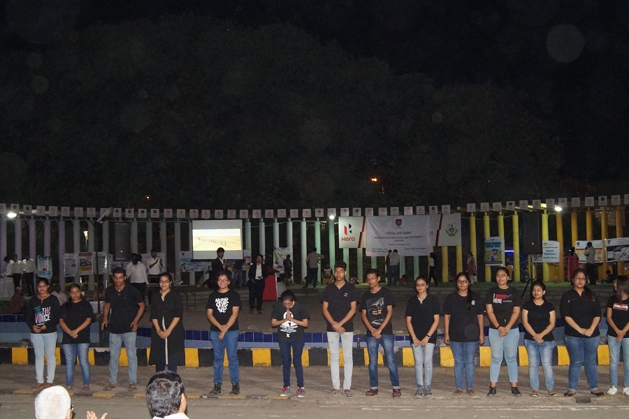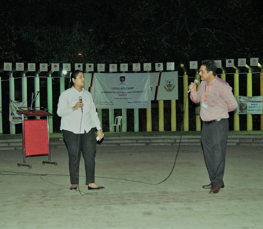 The Students of Maharashtra National Law University, Nagpur, a premier law school of India, organized a ‘Mobile Legal Aid Camp’ at Children’s Traffic Park, Dharampeth at 7 p.m. on April 20, 2018 as part of their university social responsibility and in order to enhance awareness among common citizens about law, legal rights and legal process. Mobile Legal Aid Camp is a new initiative of the Maharashtra National Law University to outreach the larger population of the society to spread awareness on their Constitutional and other legal rights and help them get justice in order to lead a dignified life.